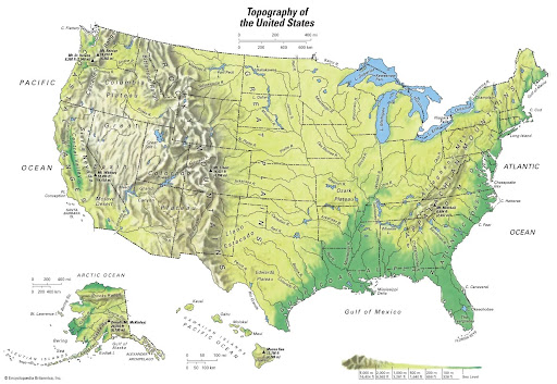 Ağ Topographic Maps of the United States Credits and permissions: The maps on this page were created by Jonathan R. Hendricks for the Earth@Home project. Greens indicate lower elevation, browns higher.